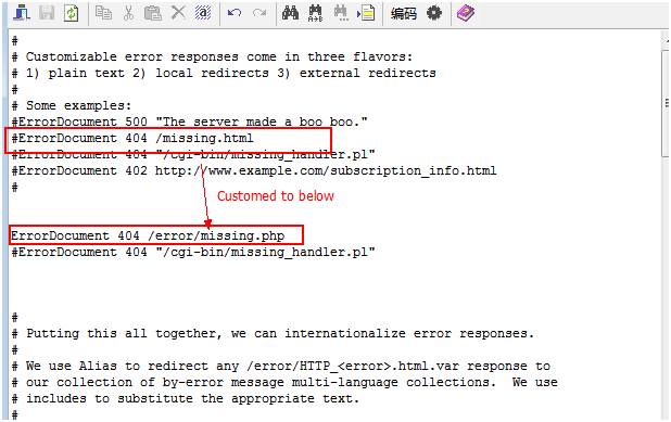As you can see, I added one line specifically for the Error page, which is located in /var/www/error/missing.php, wait, how come the path is different from the system path?